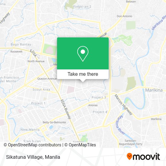 How to get to Barangay Sikatuna Village in Manila by Bus or Train?